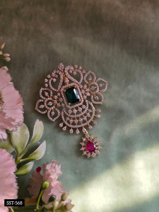 SST 568 | EMERALD FILIGREE STATEMENT BROOCH PENDANT