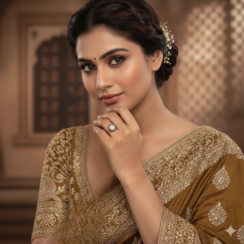 THIS STUNNING RING FEATURES AN INTRICATE DESIGN WITH ELEGANT BLACK BEADS SURROUNDING A SPARKLING CENTER STONE. THIS RING ALSO ADJUSTABLE. PERFECT FOR ADDING A TOUCH OF TRADITIONAL CHARM AND MODERN STYLE TO YOUR JEWELRY COLLECTION. COMFORTABLE AND LIGHTWEIGHT, THIS RING IS IDEAL FOR BOTH CASUAL AND SPECIAL OCCASIONS.