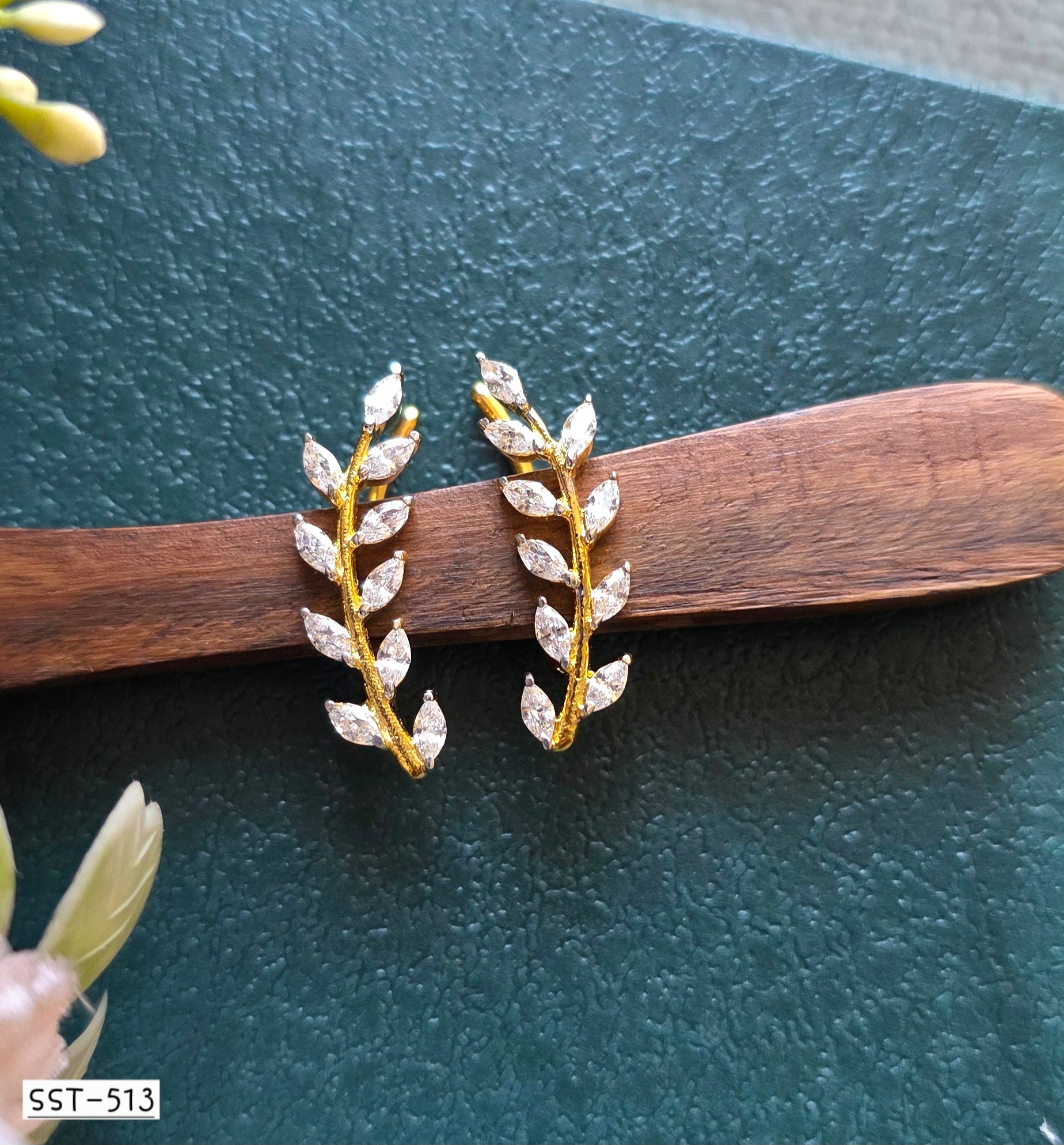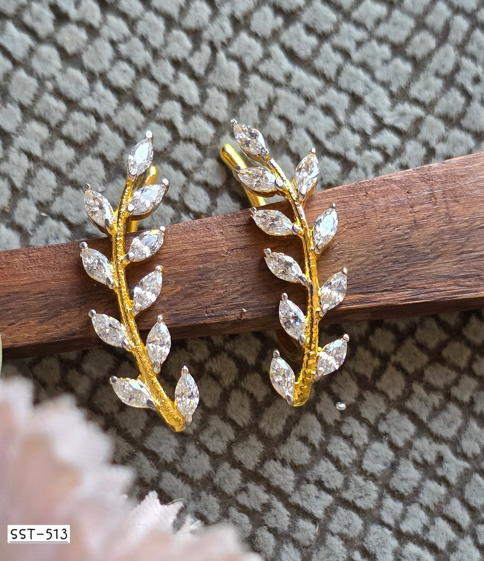 ADORN YOURSELF WITH THESE SHIMMERING LEAF DIAMOND EARRINGS, A PERFECT EMBODIMENT OF NATURAL ELEGANCE AND SPARKLING SOPHISTICATION. CRAFTED WITH DELICATE LEAF DESIGNS ENCRUSTED WITH DAZZLING DIAMONDS, THESE EARRINGS OFFER A TIMELESS CHARM THAT ELEVATES ANY LOOK. IDEAL FOR THOSE SEEKING A UNIQUE, EYE-CATCHING ACCESSORY, THEY ARE A MUST-HAVE FOR YOUR LUXURIOUS COLLECTION.