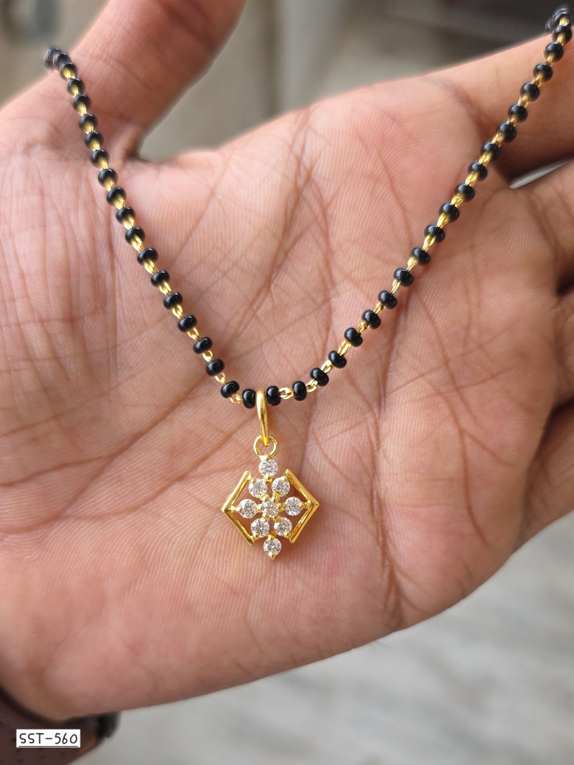EMBRACE TRADITION WITH THIS CLASSIC MANGALSUTRA, FEATURING A DAZZLING DIAMOND PENDANT AND RICH BLACK BEADS. A SYMBOL OF ELEGANCE AND LOVE, PERFECT FOR CELEBRATING TIMELESS BONDS.