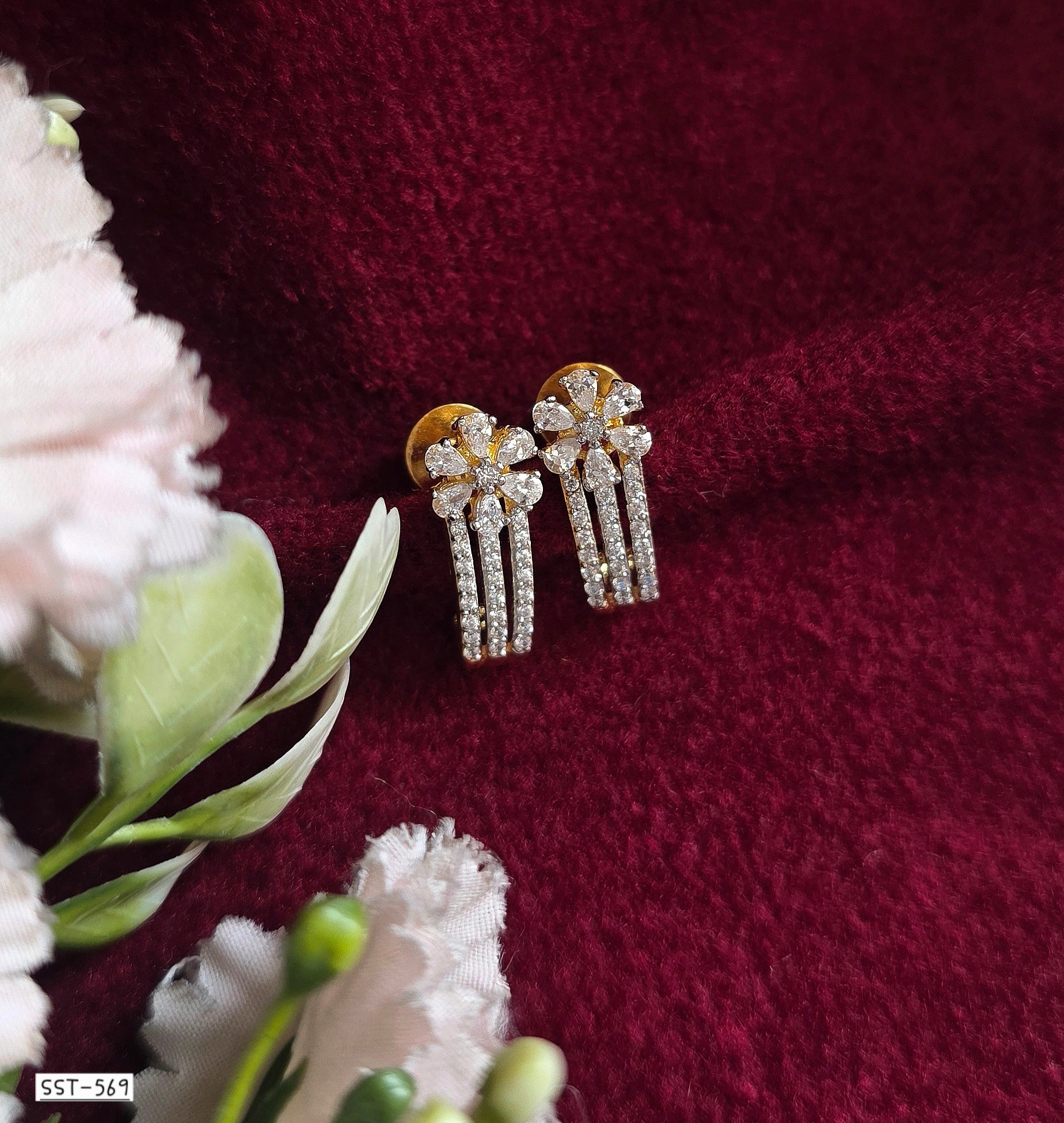 DISCOVER A TIMELESS TOUCH OF LUXURY WITH THESE EXQUISITELY CRAFTED BLOOM CASCADE STUDS. FEATURING A DAINTY FLORAL TOP ACCENTED WITH SPARKLING CRYSTAL DETAILS AND A TRIPLE-LINE DROP DESIGN, THESE STUDS ADD A GRACEFUL, RADIANT FINISH TO ANY LOOK. PERFECT FOR DAILY ELEGANCE OR SPECIAL OCCASIONS, THEY OFFER A REFINED SHINE THAT COMPLEMENTS EVERY STYLE. ELEVATE YOUR JEWELRY COLLECTION WITH THIS STUNNING, MUST-HAVE PAIR.